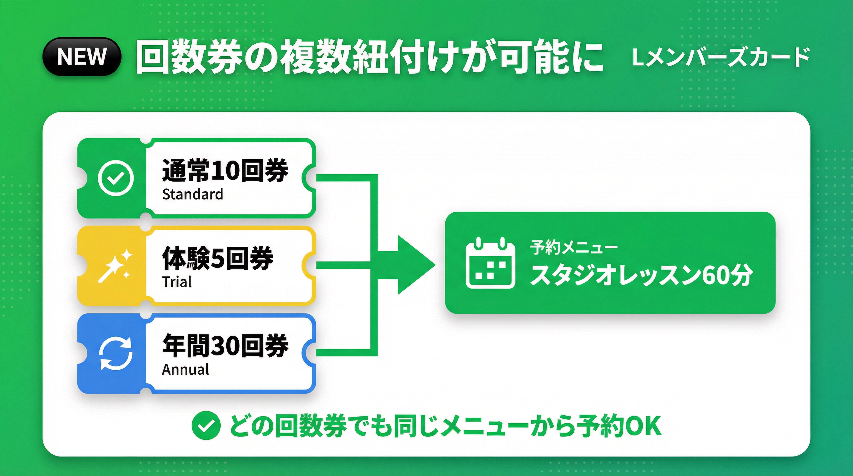 予約メニューに複数の回数券を紐付けできるようになりました。